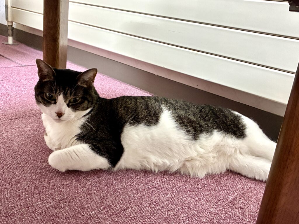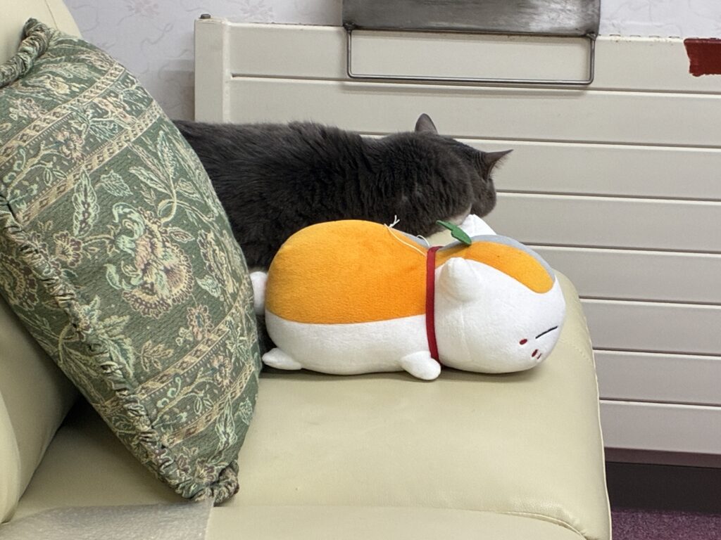 ネコは相変わらず無関心(にゃんこ先生の奥で寝ている集ちゃん)