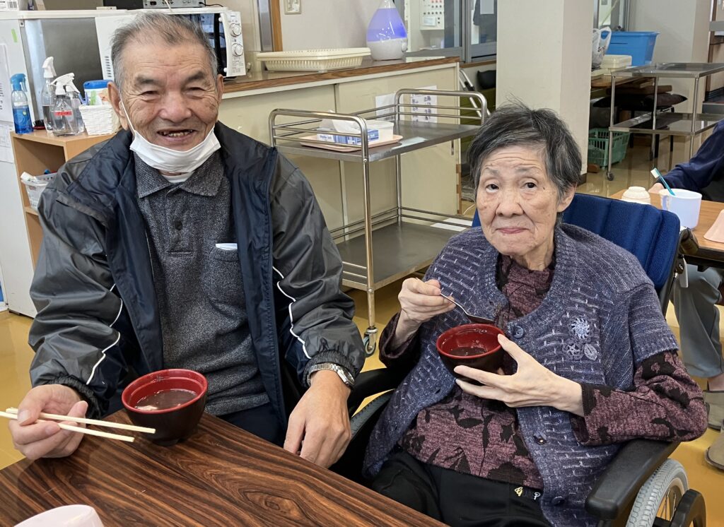 懇談会が終わった後は、入居者さんと一緒に1月の特別喫茶『お汁粉』を召し上がっていただきました。